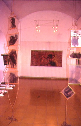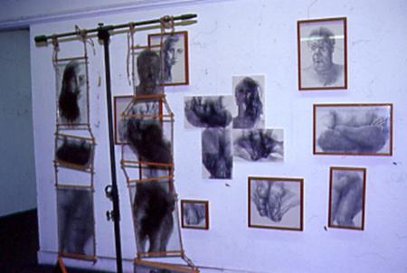 | "Hang in there!" 2002 mixed media 12”x 6’ |
