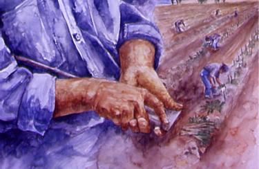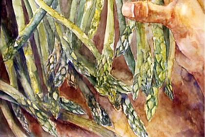 | "Asparagus Harvest" 2003 watercolor on paper 24”x 18” |