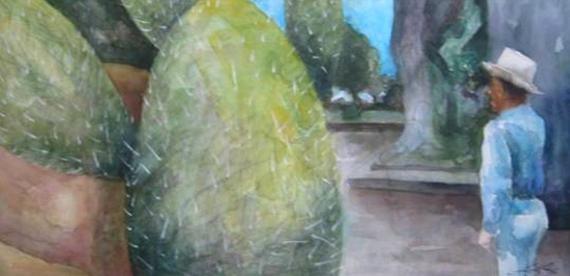 | "Una tarde en el jardin" 2002 watercolor on paper 29”x 21” |