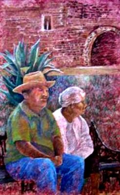 | "Contando el dinero" 2002 oil pastel on amate 15”x 23” |